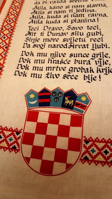 PRODAJE SE HIMNA NA PLATNI ZA OKVIRITI ILI NA ZID ,dimenzija 60cm x 30 cm,cijena,15 eurq ,uplatq t racun saljem postom na adresu,