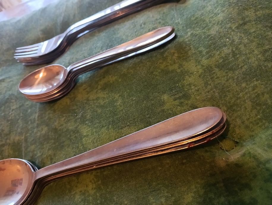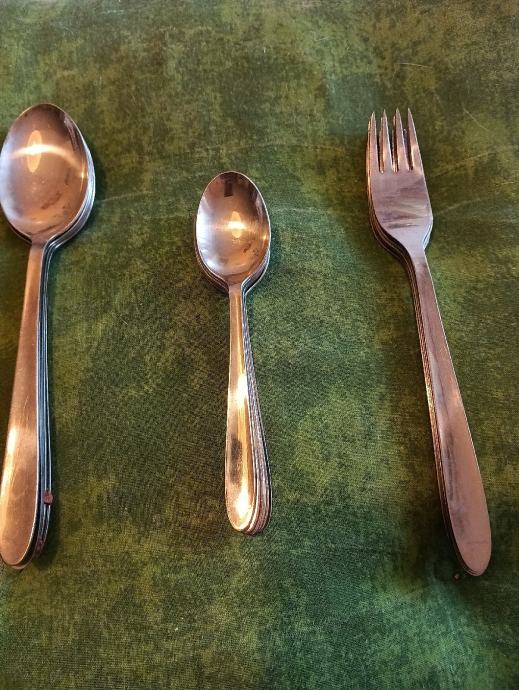 Prodajem lot od 18 komada starog bešteka Rahman Pakistan, 6 vilica, 6 žlica i 6 malih žličica vidljivih na slikama. Cijena za sve. Plačanje na racun ili gotovina.