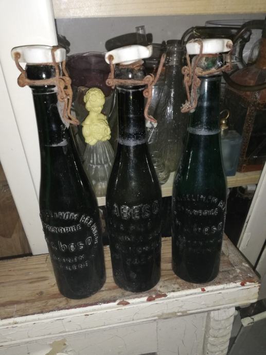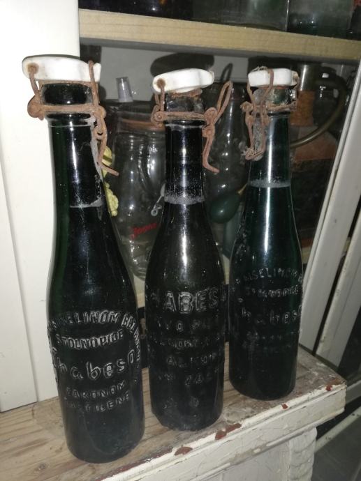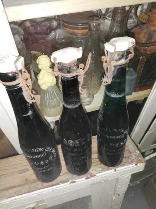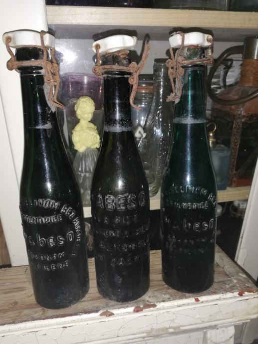Lot od 20 komada staklenih boca šabeso, sve sačuvane sa porculanskim poklopcem; napomena: kupovina samo u lotu.