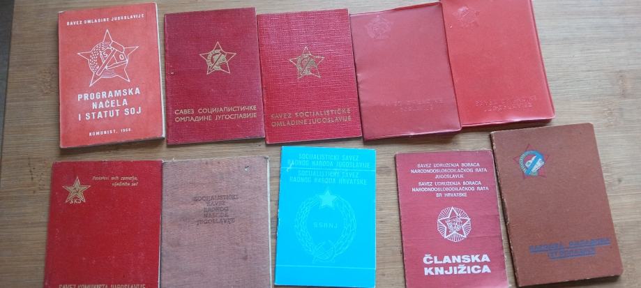 Lot od 10 starih članskih iskaznica iz ex yu(omladinska,boračka,saveza komunista...)