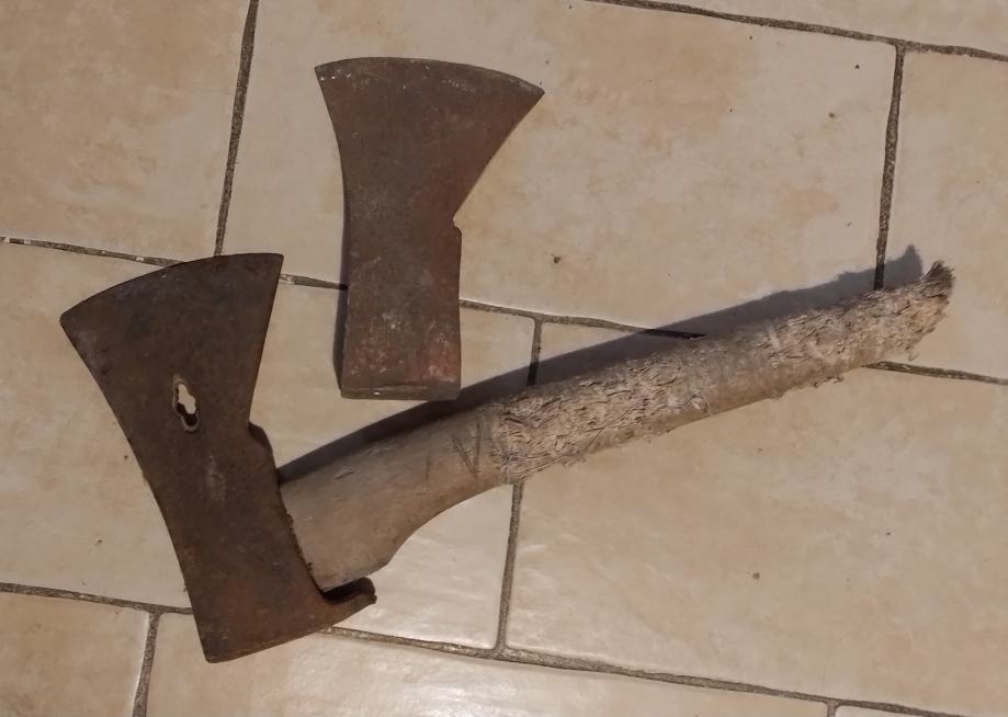 Dužine 15.9cm oštrica 11.1cm,leđa 3cm te druga dužine 17cm,oštrica 10.4cm,leđa 3.6cm.Bez varova ni intervencija te se prodaju u nađenom stanju(obje zajedno 15e)