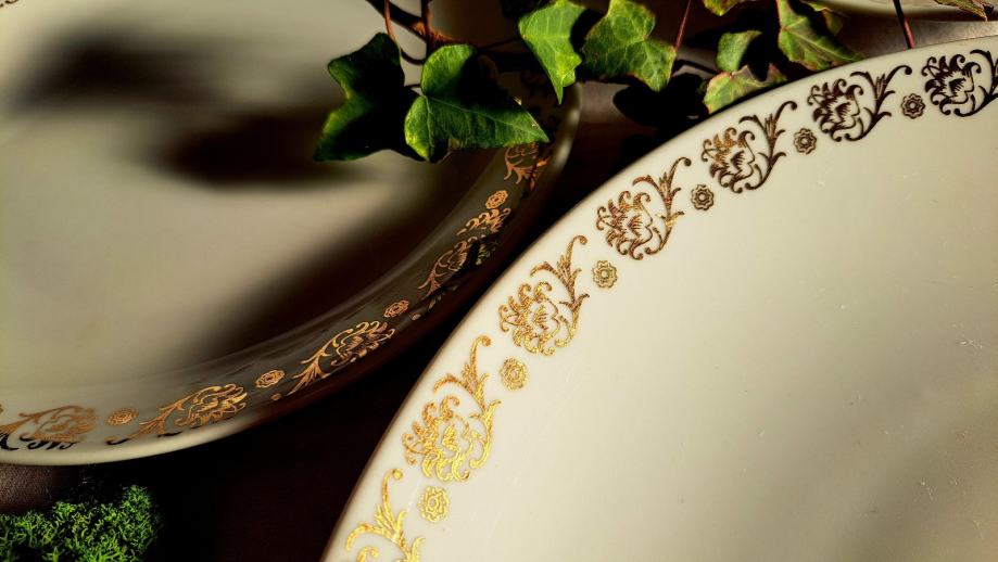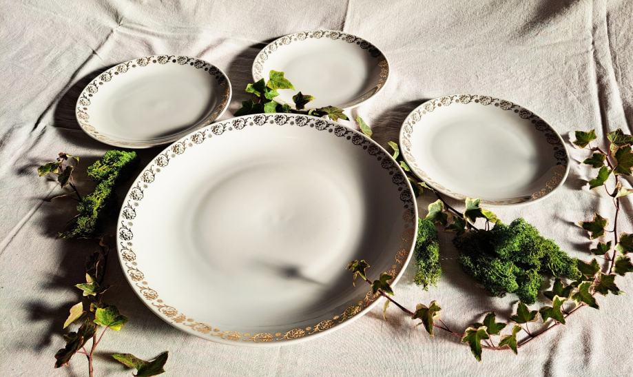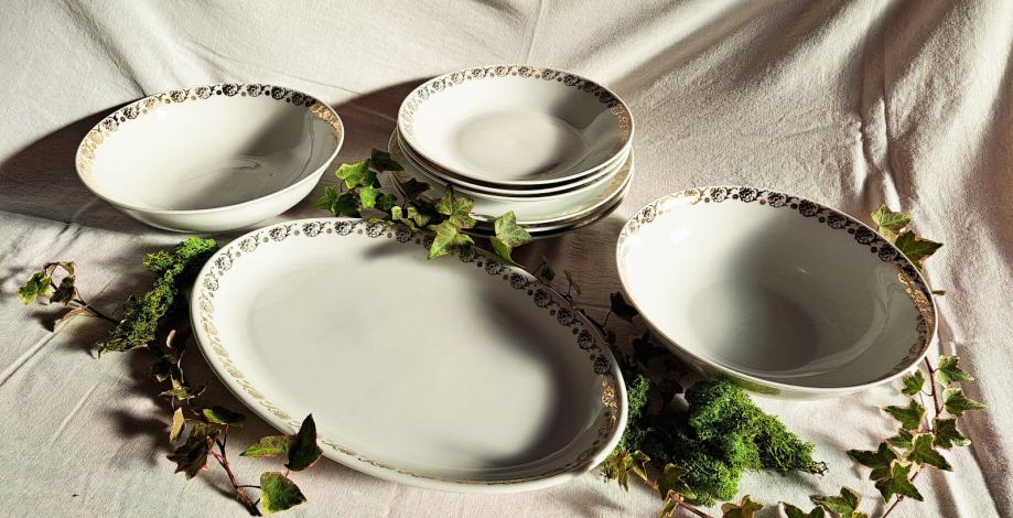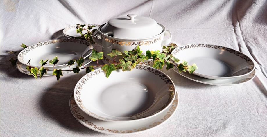 Prodajem porculanski servis Loučky "Josefina", proizveden u Čehoslovačkoj i kupljen početkom 80-ih godina. Klasičan bijeli porculan s dekorativno pozlaćenim rubom, elegantan i bezvremenski dizajn.
