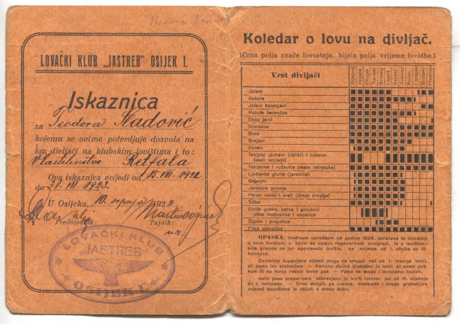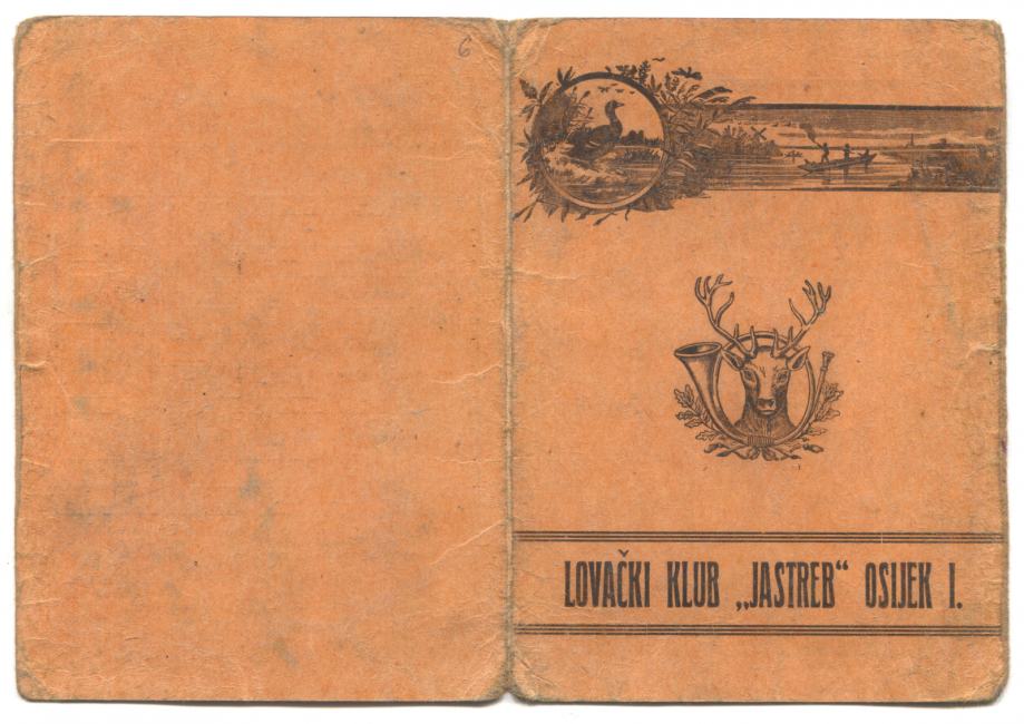 LOVAČKI KLUB OSIJEK RETFALA - LOV LOVSTVO, STARA ISKAZNICA IZ 1922.g.