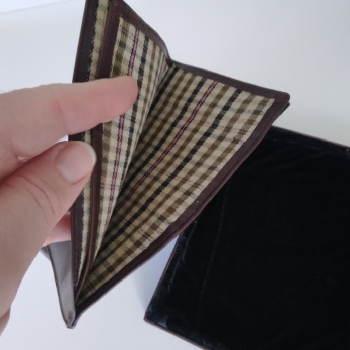 Novčanik se nalazi u kutiji. Unutarnji prostor kutije je obložen mekanom tkaninom.
