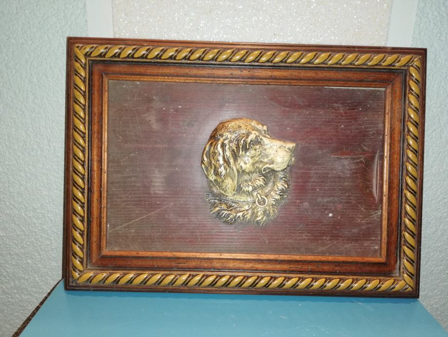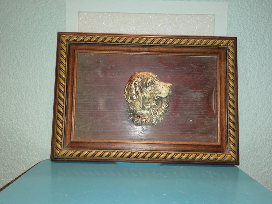 Reljef lovačkog psa, drvo, uramljeno, iz privatne kolekcije; dimenzije sa okvirom: 36,5 x 25,8 cm; debljina okvira. 3,5 cm.