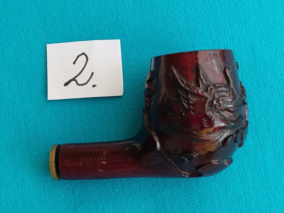 Drvena rezbarena glava lule sa motivima ptica.