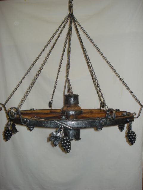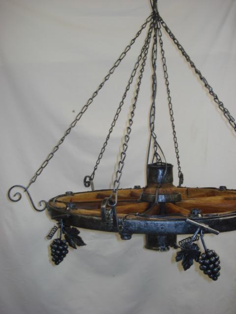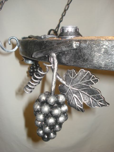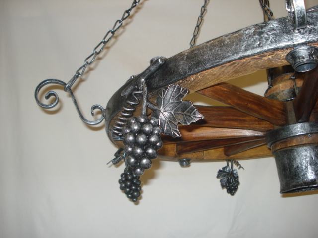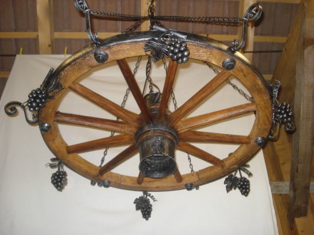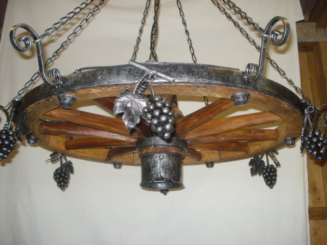 Unikatni luster od starog kotača ukrašen grozdovima od kovanog željeza
