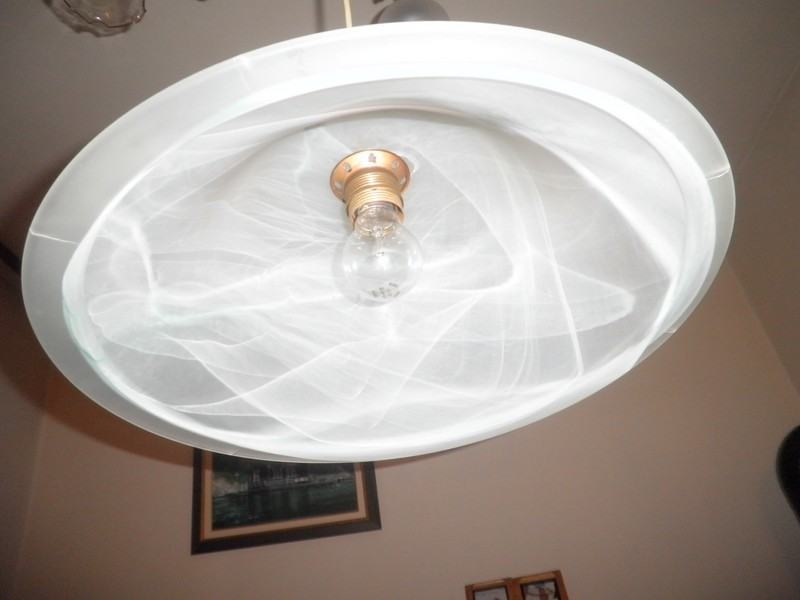 Elegantan stari luster sa neobičnim sjenilom i metalnim grlom ..... veoma prigodan kao kuhinjski luster ili .......