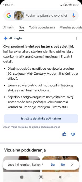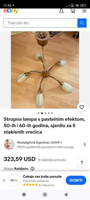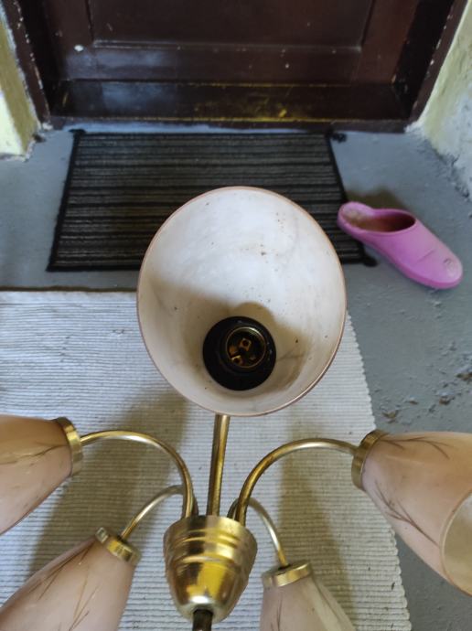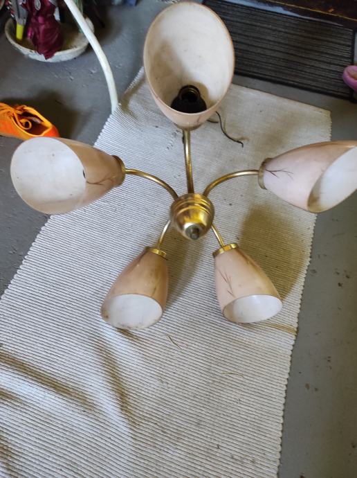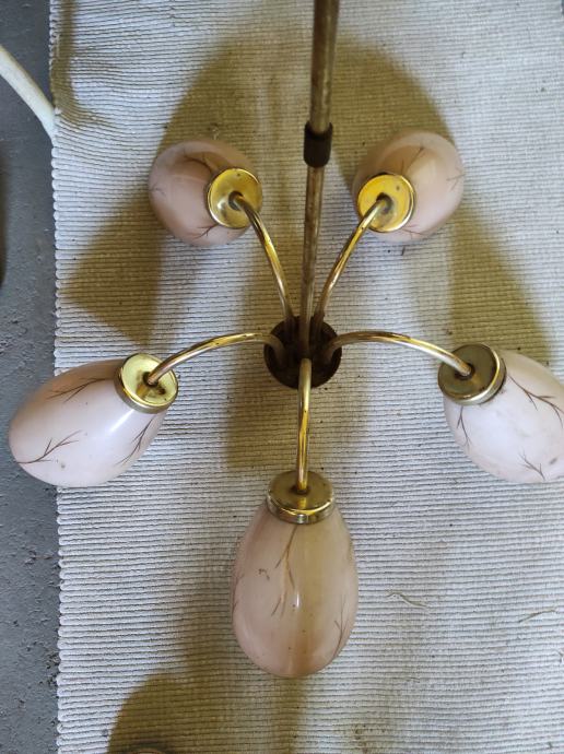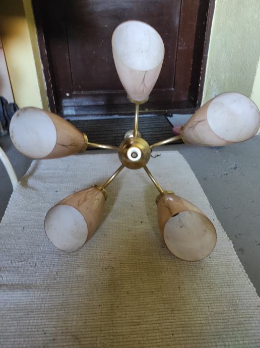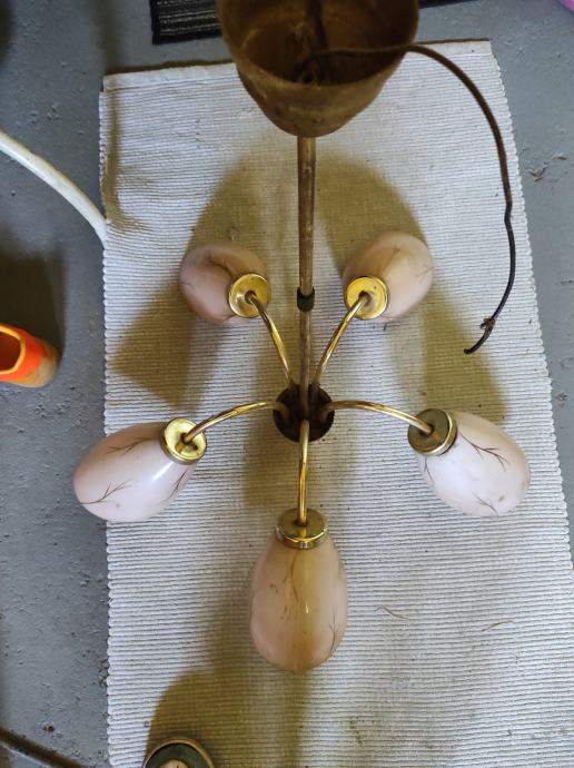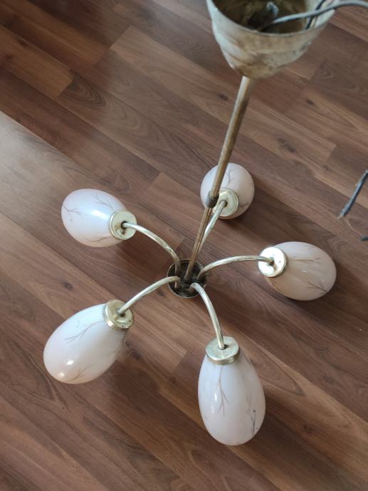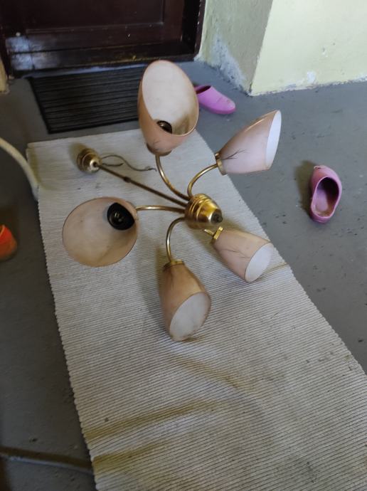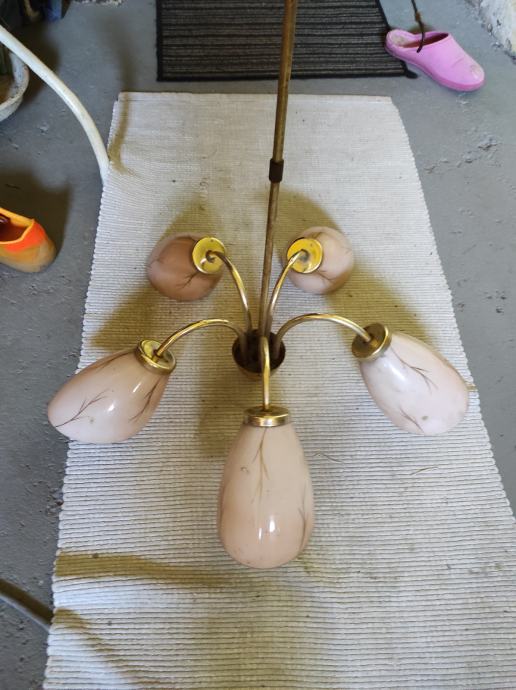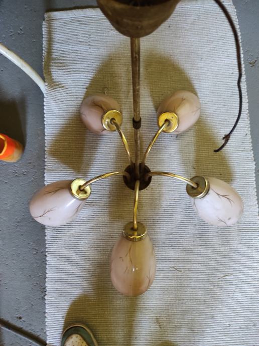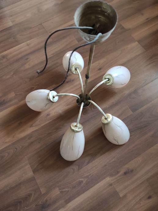 Ovaj stari Retro luster sa pet sjajila u obliku jajeta je pravo malo umjetničko djelo jer je i dalje ocuvan maximalno,a , star je oko 80 godina,bio od mog pradjeda i prabake.Treba ga oprati od stajanja i može nekome uljepšati kucu, vikendicu, caffe bar, etno imanje ili gdje vec kome pase,kostur je od mesinga,a sjajila od tankog mlječnog stakla koje se ja bojim obrisati da ne pukne koliko je krhko,moze se rastaviti na suze ili krave,a i sjajila se odšarafljuju.Za sve informacije nazovite na broj 097-6601365 ili pošaljite upit na Viber ili Njuskalo, a Šaljem Poštom preporuceno ili u dogovoru sa kupcem, stanje odlično,jedna slika je sa eBay-a kao primjer za koliko se prodaju takvi i slični lusteri 350-400 eura ili vise ,ovisno o stanju.Pogledaj slike!!