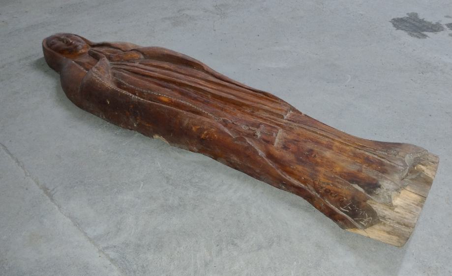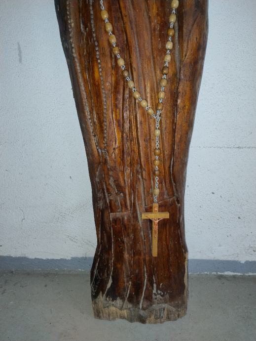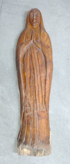 Majka Božja, zidni reljef od hrastovine sa potpisom autora. Dimenzije visina 138 cm, širina 37,0 cm, Dubina 9,0 cm . Poklon kupcu, drvena velika krunica.