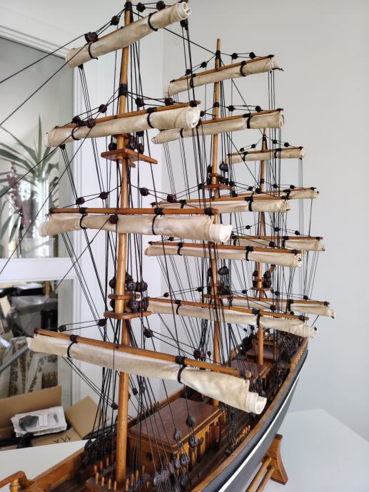 Prodaje se maketa broda jedrenjaka, ručni rad, materijal drvo, furnir itd.