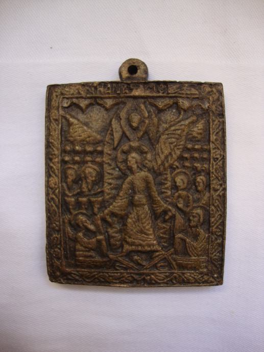 Stara ikona iz 70'. imitacija orginala -tvrda plastika bojana zlatnim listovima i bojom -suvenir