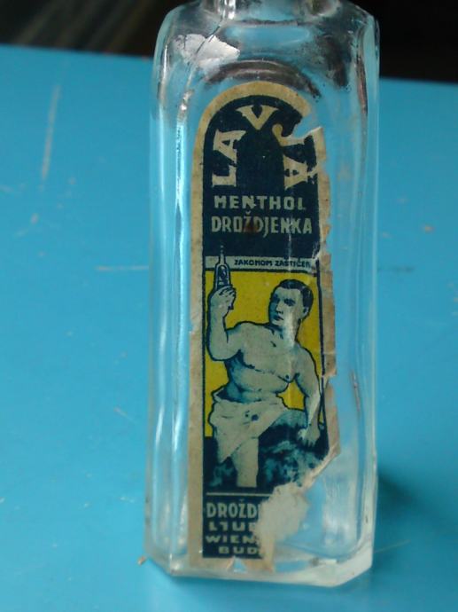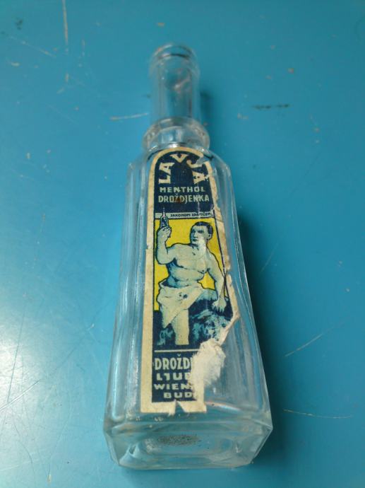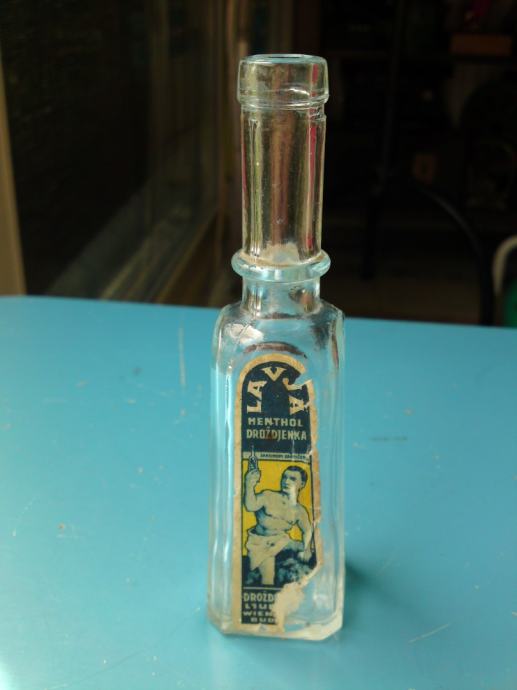 Mala staklena boca sa etiketom - Lavja - mentol - Droždjanka.