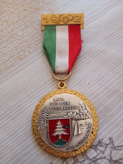Prodajem medalju 1.int. drei seen Volksmarsch, F.C Durlangen 1972g. Plačanje na račun ili gotovina.