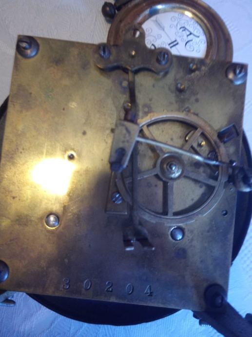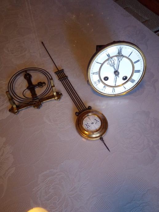 Na prodaju mehanički mehanizam za zidni sat. Ciferplat je promjera 14 cm,dubina sa nosačem 8 cm. Mehanizam se nalazio u kutiji dimenzija 54 x 20 cm. Mehanizam je ispravan i točan. Svi dijelovi kao na slici.