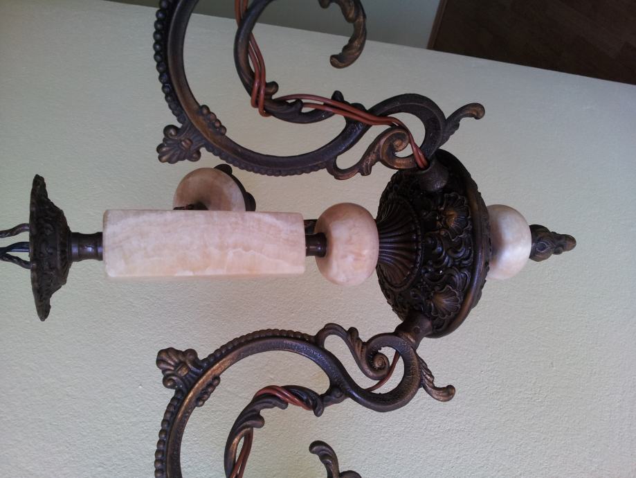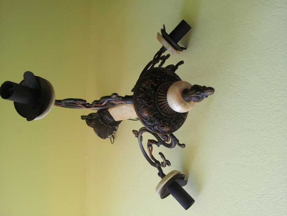 Prodajem predivni stari luster bez staklenih kugli-kombinacija mesing kamen na kojeg se stavljaju tri sijalice sa malim grlom.