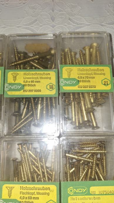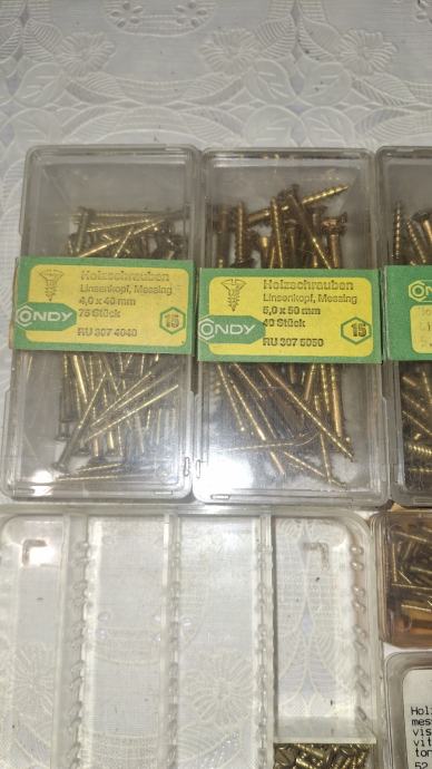 Prodajem mesingane vijke sa ravnim utorom,pogodno za restauratore i maketare, vijci su doneseni 80-tih iz Njemacke i na orginalnim kutijicama su jos naljepnice sa cijenom u DEM.