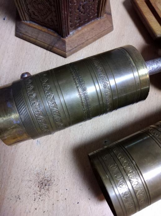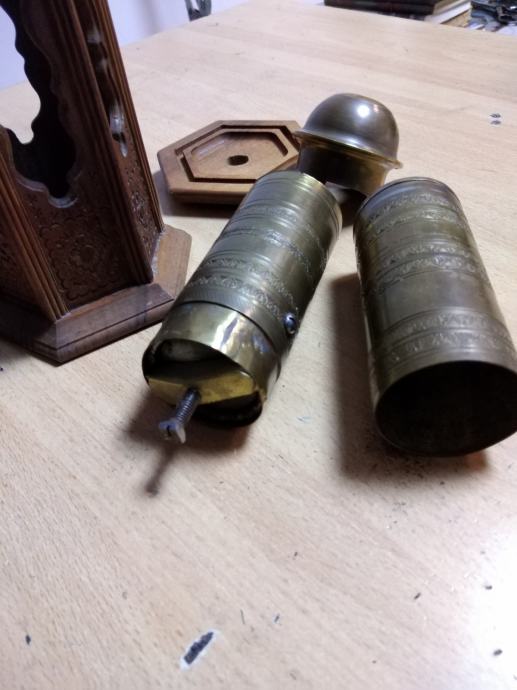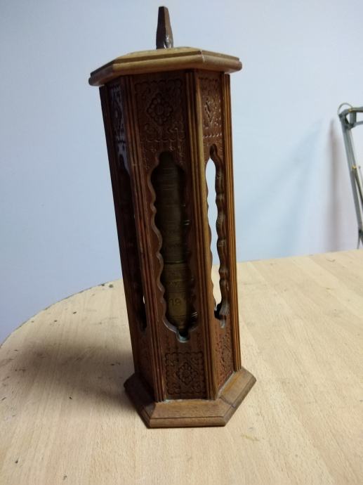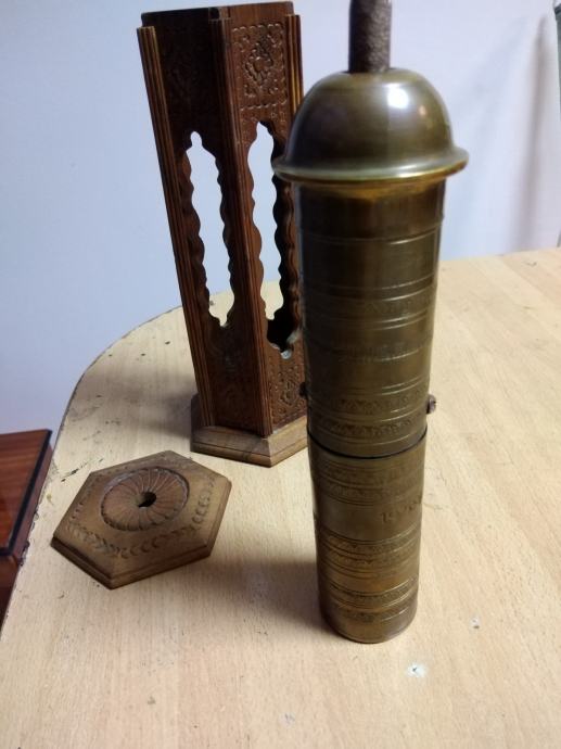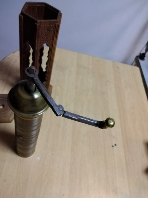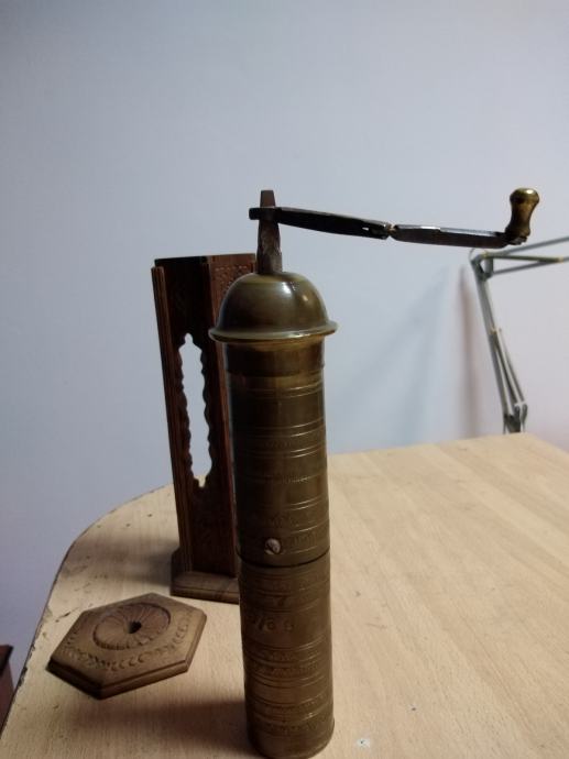 Unikat ručni rad 1969 god. Mlin za kavu sa drvenom rezbarenom kutijom. Visina 26 cm, u super i ispravnom stanju.
