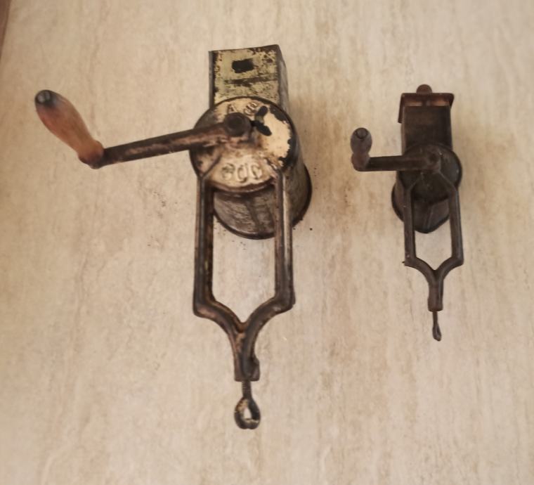 Prodajem dva velika i jedan mali ručni mlinc za orahe, lješnjake, mrvice i sl. u ispravnom stanju.