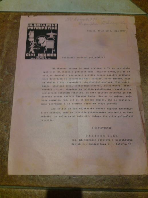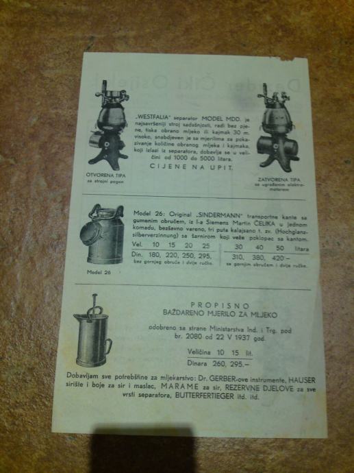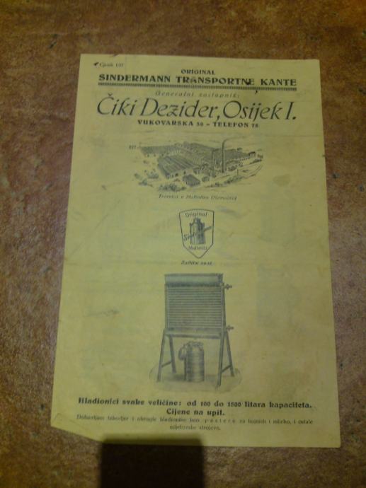Stari ilustrirani cijenici mljekarski potrepština iz trgovačke kuće ČIKI DESIDER iz Osijeka, nasljednika tvrtke Dragutina Erbena.