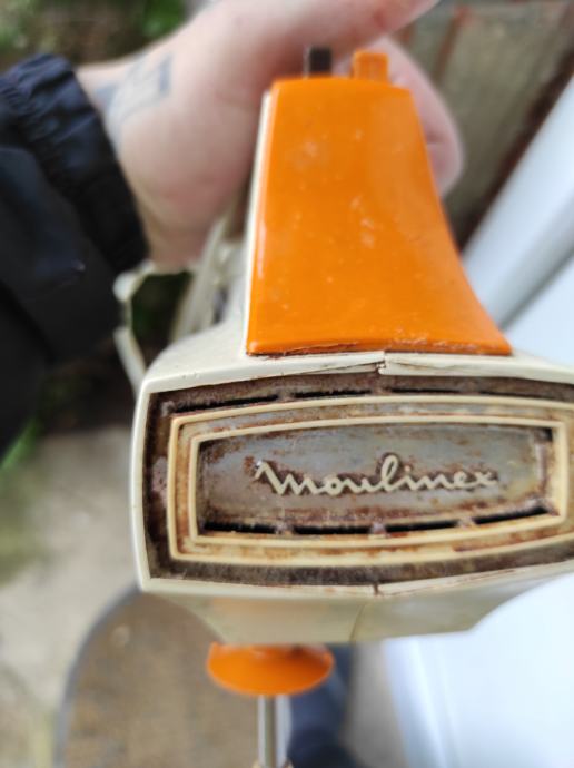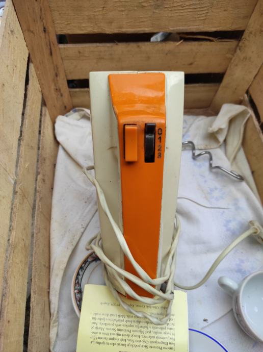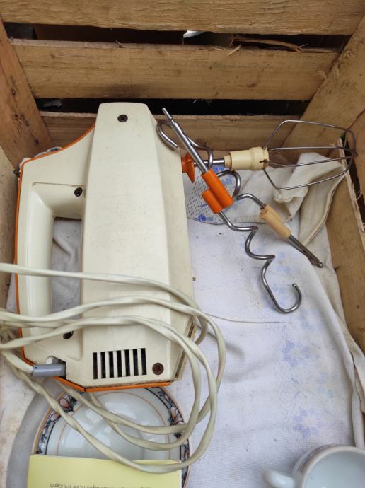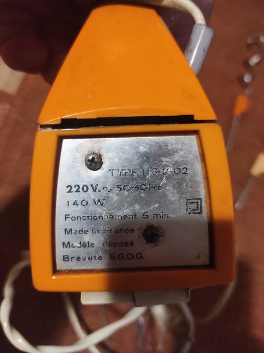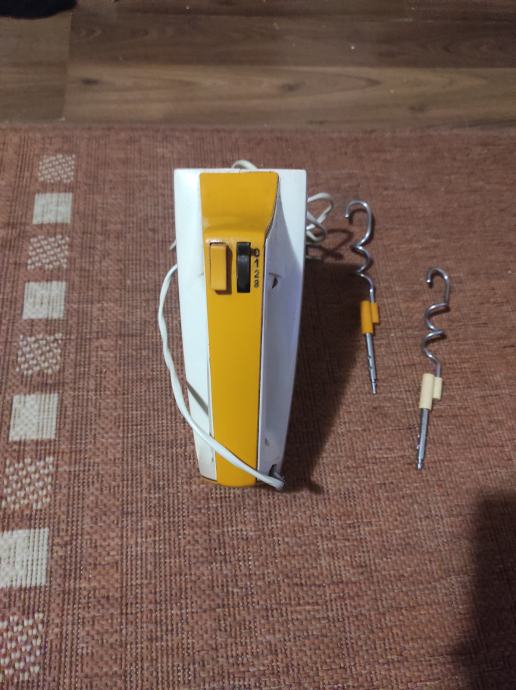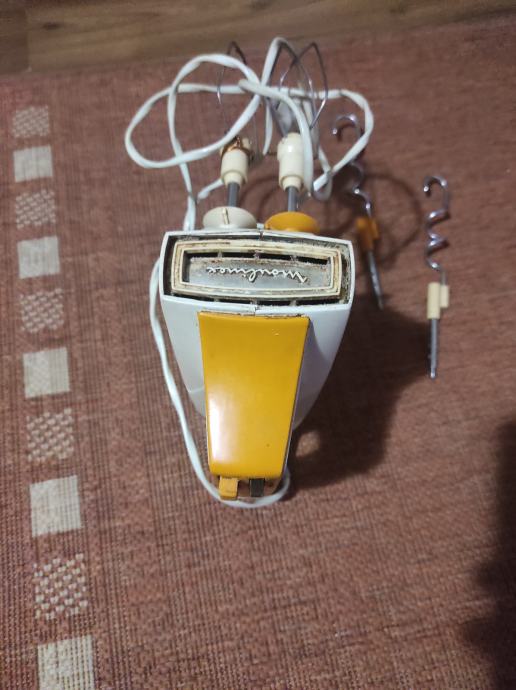 Stari Francuski kućni MIXER,jos radi sasvim normalno,ima 4 miješalice ,po dvije iste( vidi u slikama). Šaljem Poštom ili Tiskom ili u dogovoru sa kupcem,a za sve informacije nazovite na broj 097-6601365 ili pošaljite upit na Viber ili Njuskalo.Mixer je jos potpuno ispravan i nekome Ce biti dobar ukras,a ako zatreba moze i izmixati tijesto za pizzu ili kruh ili slično,stanje kao na slikama.Vidi slike!!