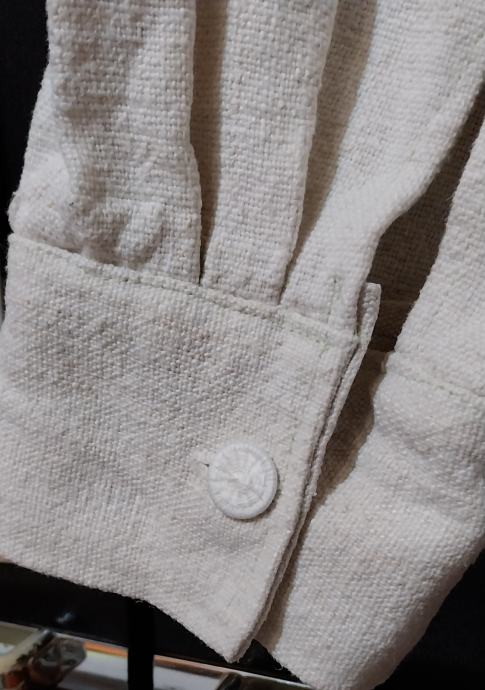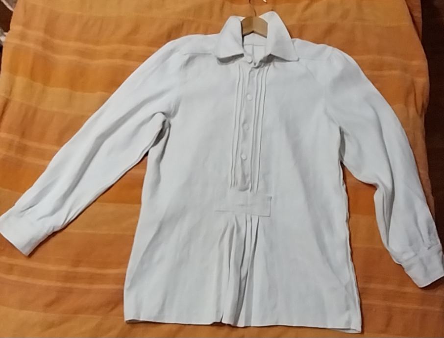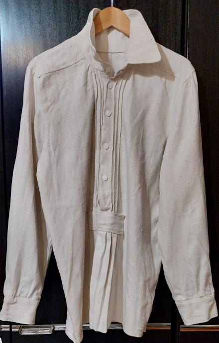 Pravo domaće platno. Duljina hlača 115 cm. Duljina košulje 82 cm,duljina rukava 70 cm , širina ramena 49 cm.