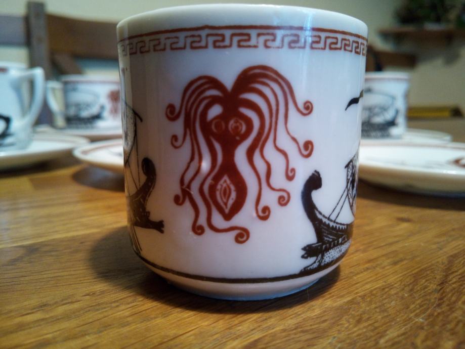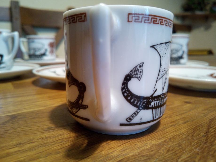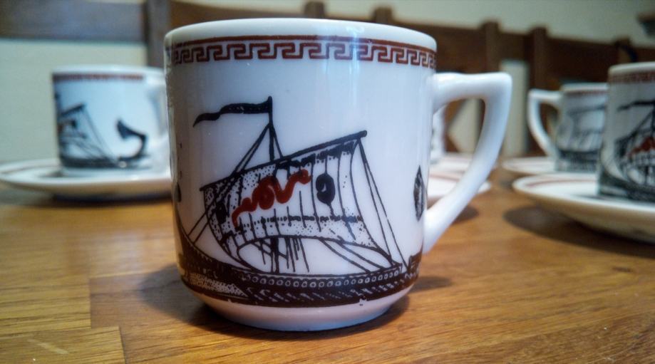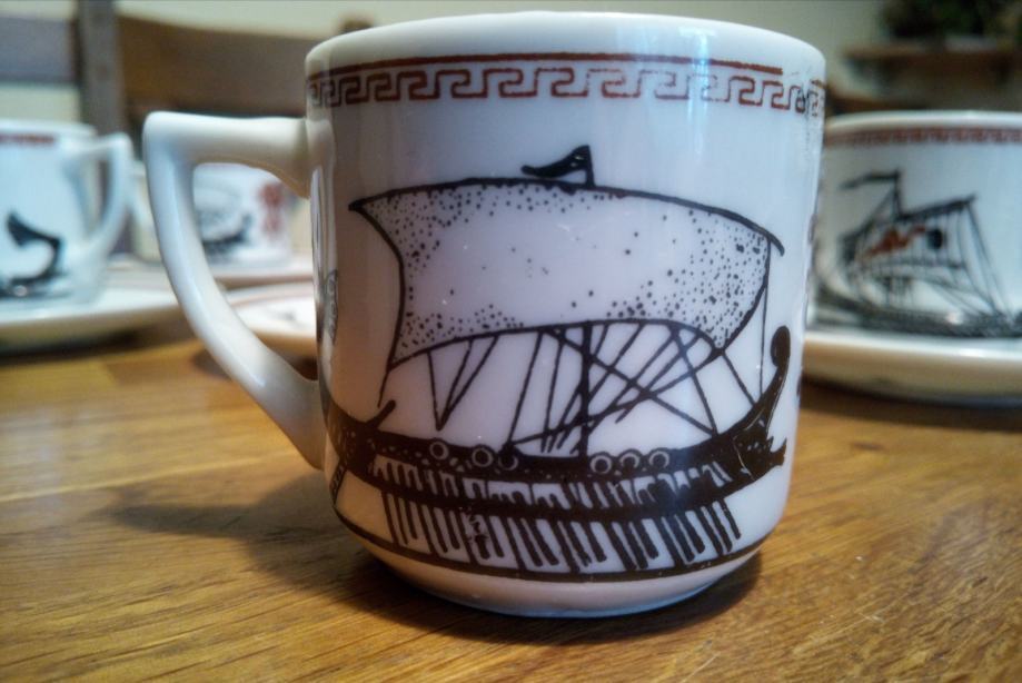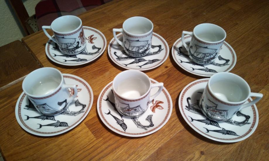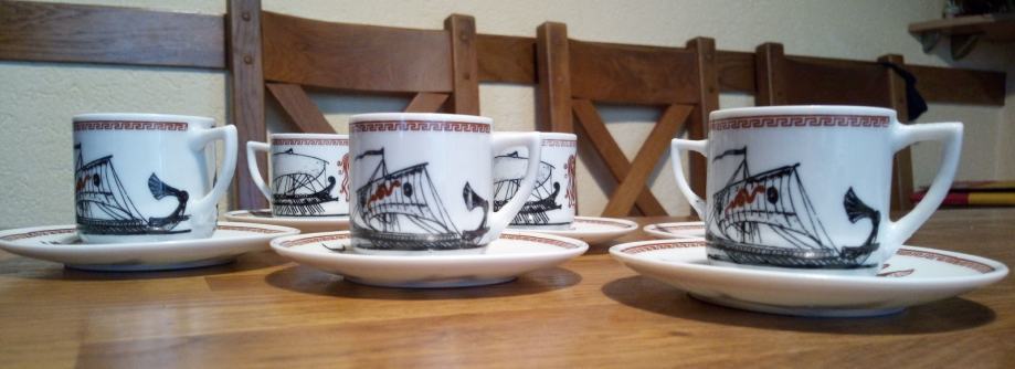 Kompletan(što je rijetko naći,pogotovo s brodovima).Sve čitavo,postoji par minornih točkica od strane majstora jer ipak je u pitanju kompletan ručni rad.Prekrasan stari expreso set.