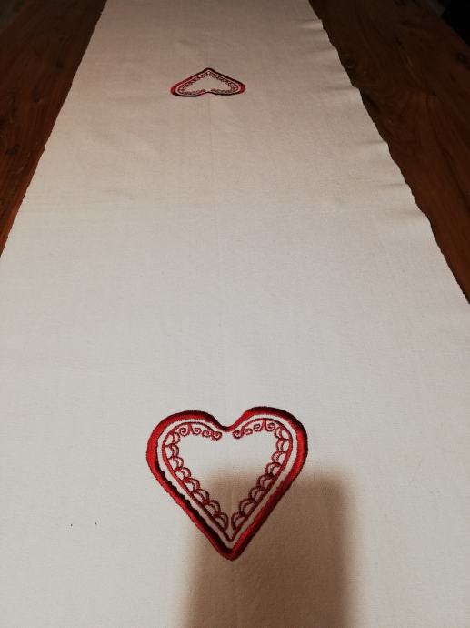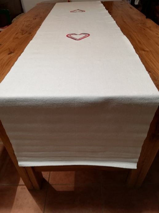 Prodajem novi nadstolnjak od ručno tkanog platna i šest novih podmetača za tanjure. Dužina nadstlonjaka je 2,20 m, a širina 44 cm.
