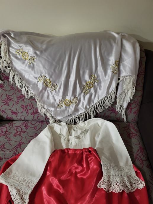 Slavonska narodna nošnja. Na prodaju skuta,oplećak,marama i pregača.