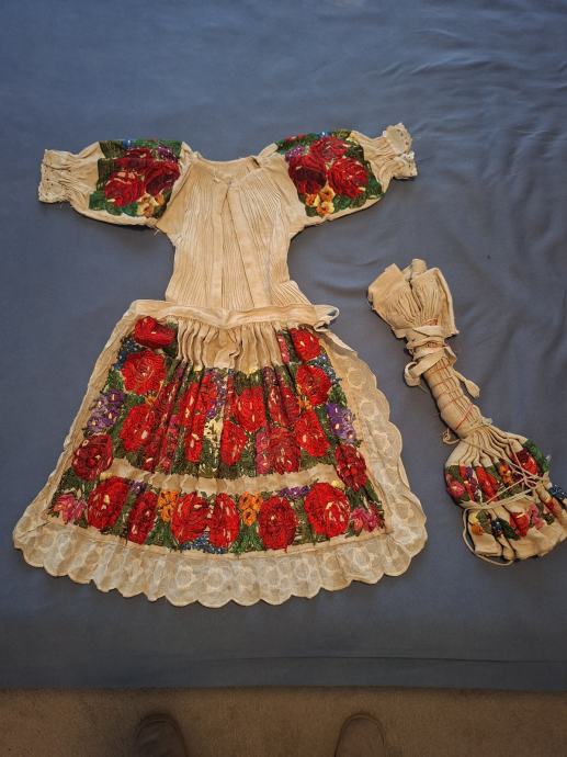 Prekrasna dječja narodnja nošnja, ručni rad, (pokupska), dužina pregače 43 cm.