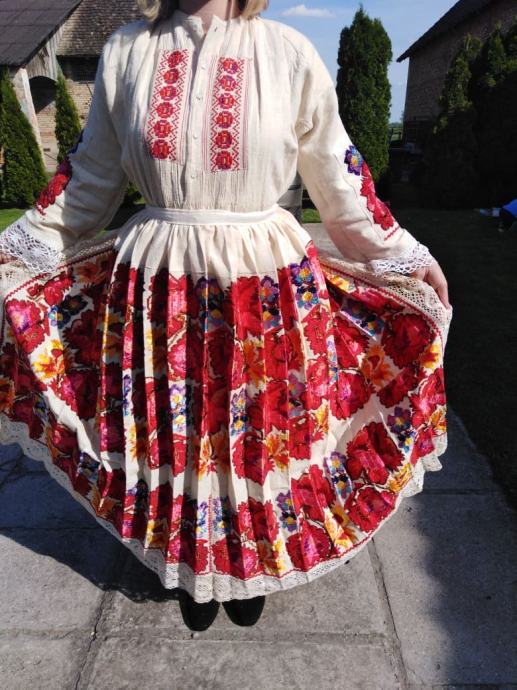 Prodaje se posavska narodna nošnja- pisanina (prebirano). Kompet: rubača, švabica, zastor. U odličnom stanju. IZRADA 1944.