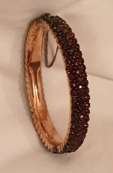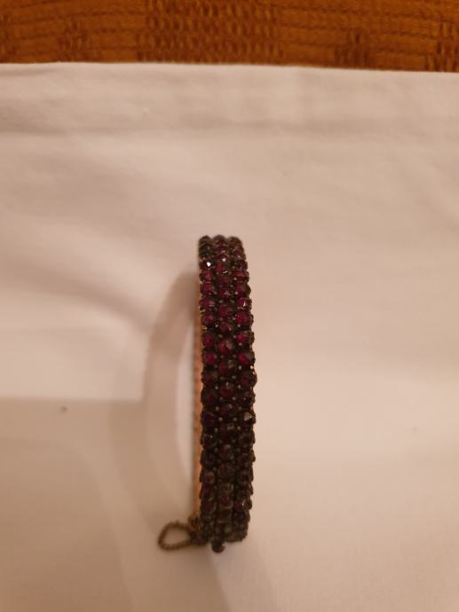 Stara narukvica, pozlaćeni metal + ručno brušeni granati - Češka