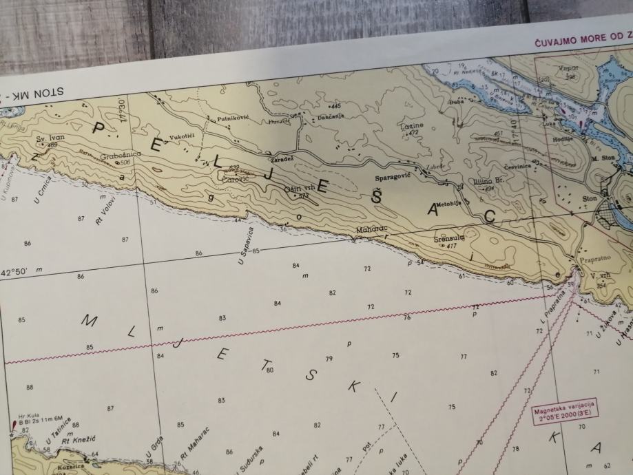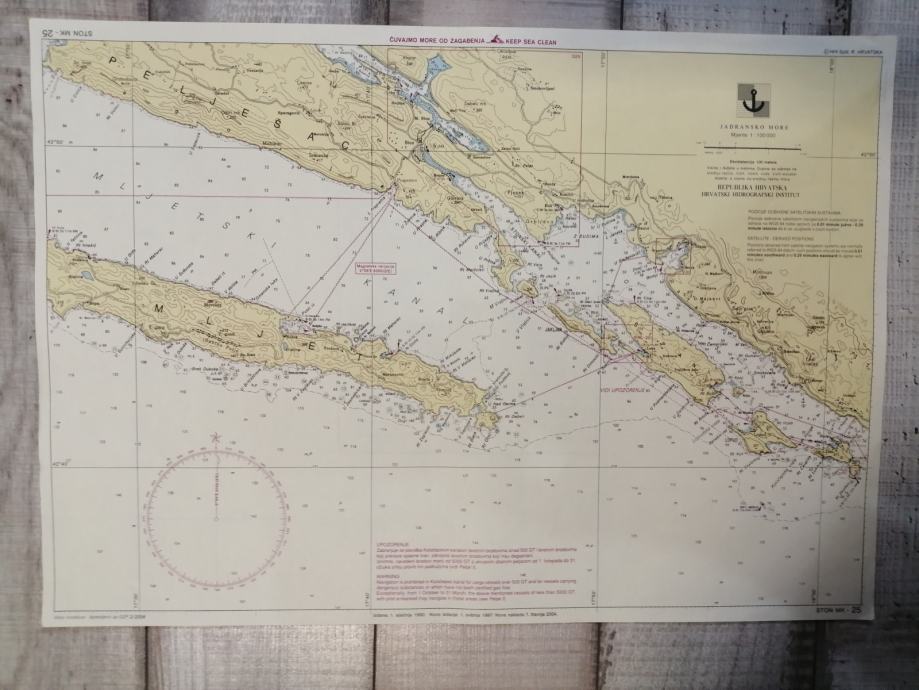 Karta otok MLJET-PELJEŠAC sa svim uvalama i ostalim značajkama,izdanje Hrvatski hidrografski institut..,dimenzije karte 50x35 cm,..,očuvana..,pogledajte i druge moje oglase,šaljem poštom,tekući