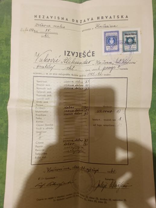 Prodajem godišnje izvješće NDH, državne realne gimnazije u Križevcima iz 1942g. Plačanje na račun ili gotovina.