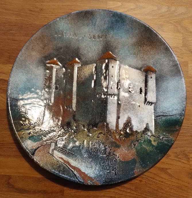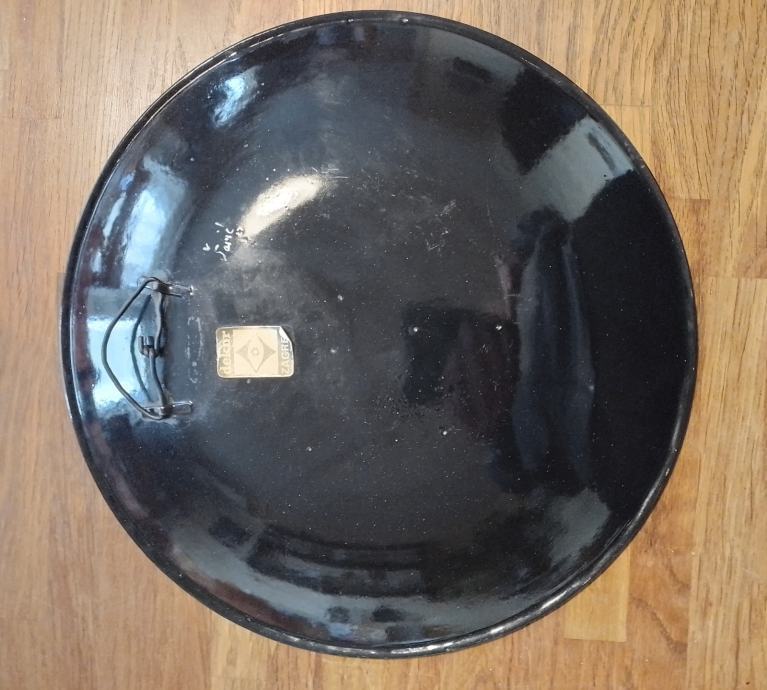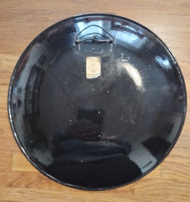 Ulje na emailu,DEKOR-ZAGREB.Promjera 31.3cm,visine 3.6cm,dosta težak.Više nego ljep emailirani predmet s potpisom.Izvanredno stanje za starost-(slanje nakon uplate predmeta na račun)
