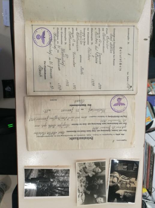 Prodajemo nacističku obiteljsku knjižicu te bračni certifikat sa 3 slike, iz Njemačke 1937. godine.