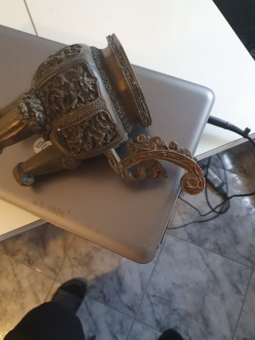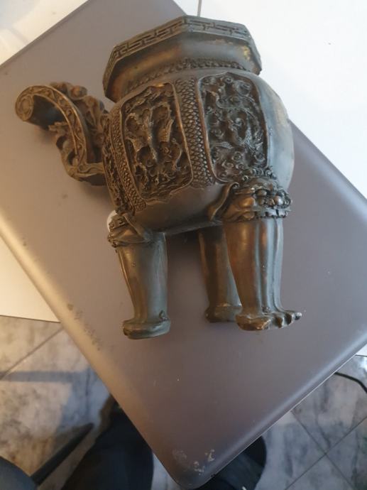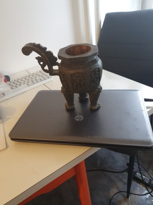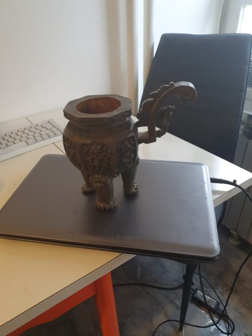 kineski obradni predmet paljenje tamjana kineska tradicija. vis.25 cm. cilindar 6.5cm. Ima 3 životinjske noge a ručka zmajev motiv.težina 1.5 kg.