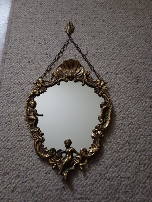 Ogledalo zidno starinsko jako lijepo ukrašeno. Dimenzije ogledala su visina 30cm širina 20cm.
