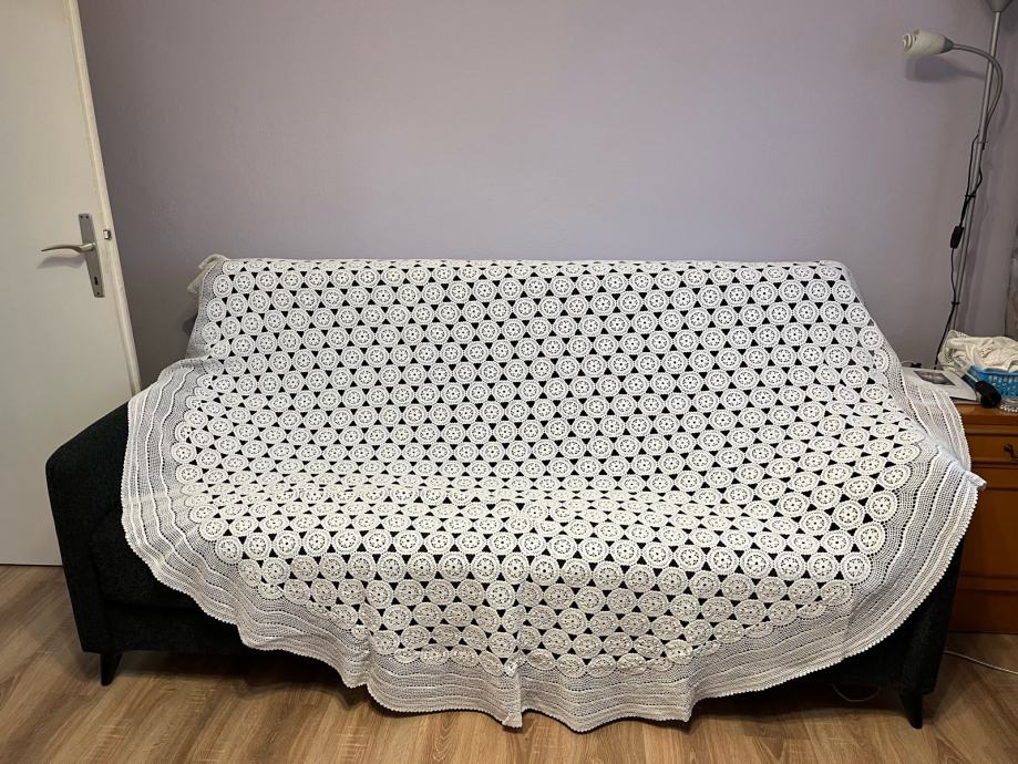 Prodajem okrugli stolnjak, heklani, promjera 2,5 metara, cijena 750 eura. Kontakt na broj 092 2411 602.