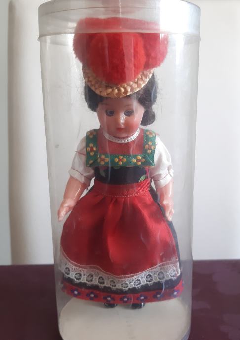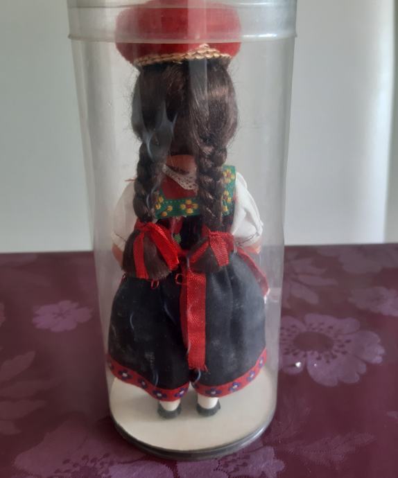 Lutka je u tradicionalnoj odjeći Gutacha u Schwarzwaldu.
