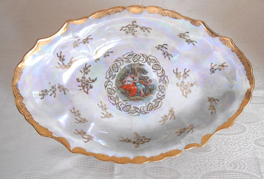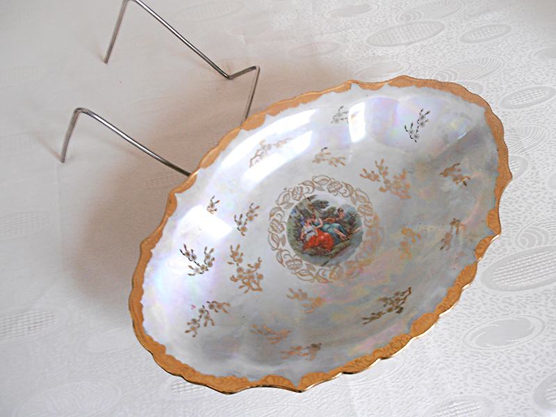 OSCAR SCHLEGELMILCH, ovalna porculanska zdjela, ručno oslikana sa pozlaćenim obrubom. Žig na poleđini. Sa stalkom. Dužina 34 cm. U odličnom stanju, neoštećeno......nije korištena već je stajala u vitrini kao ukras....