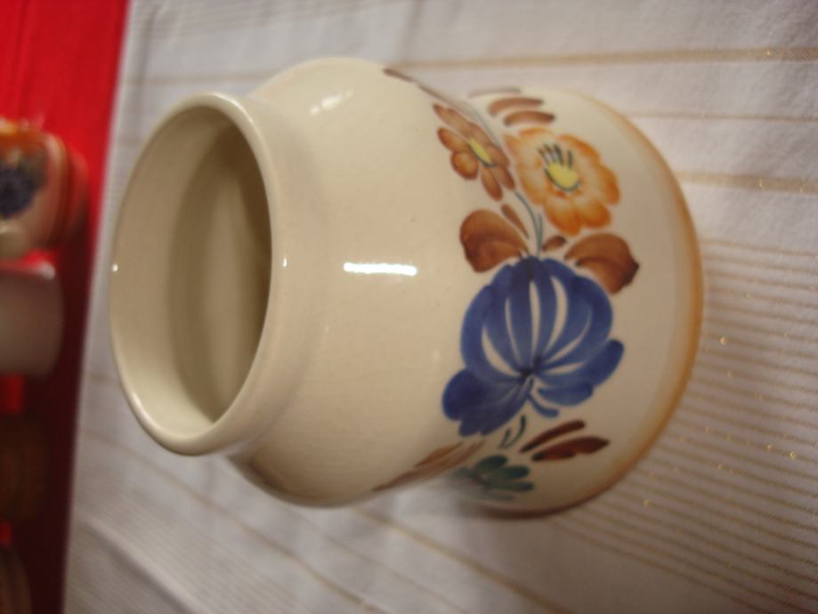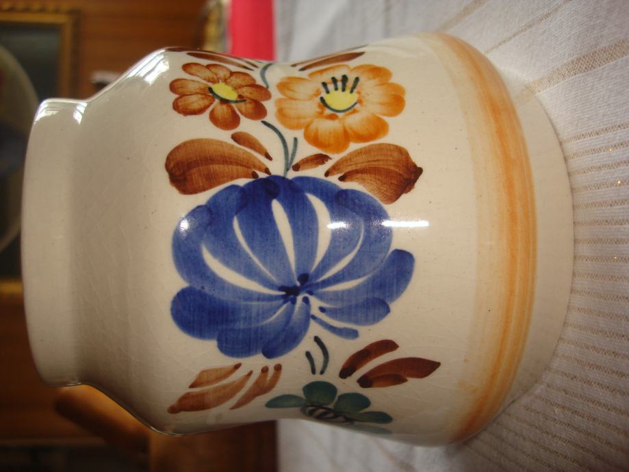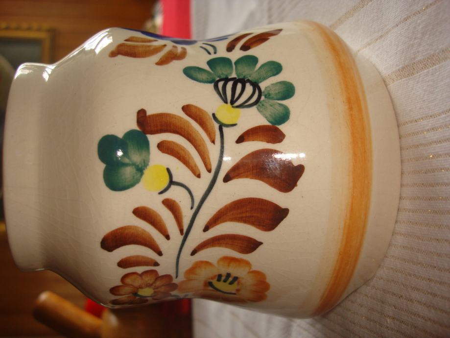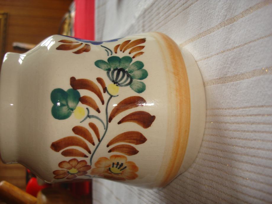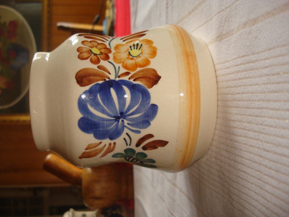 Prodajem oslikanu keramičku posudu ili vazu, potpuno očuvanu, visine 13 cm, promjera 7-12,5 cm za 8 eura. Poljska keramika.