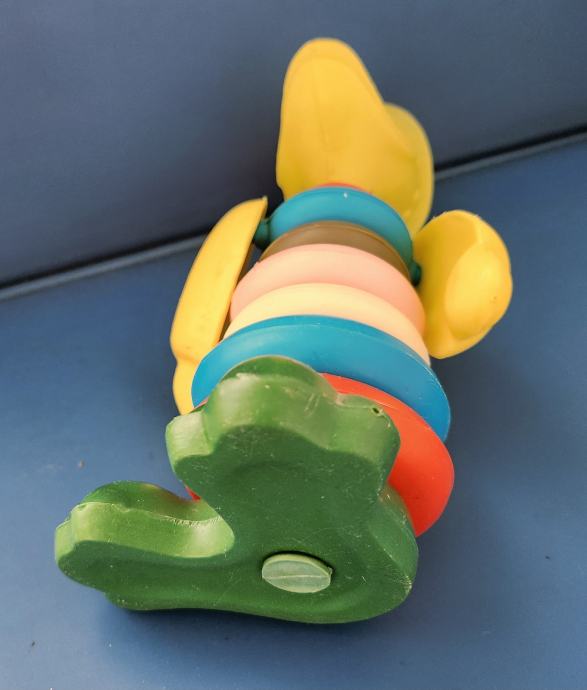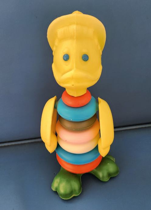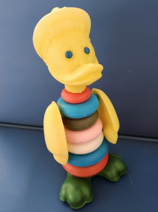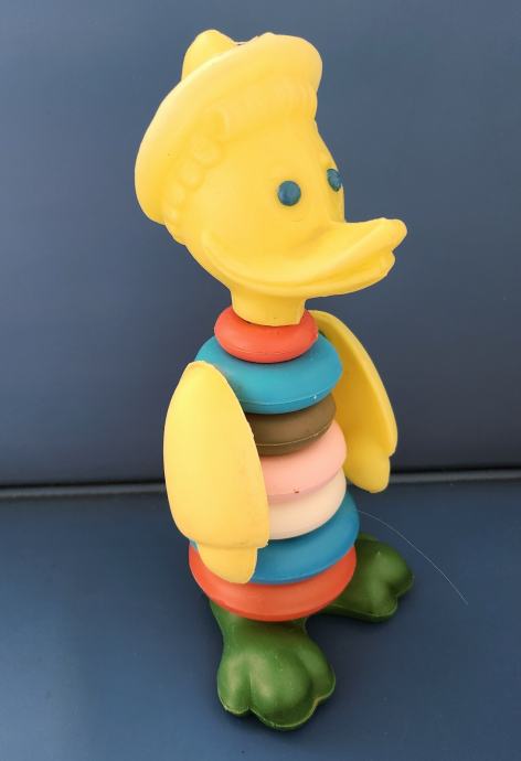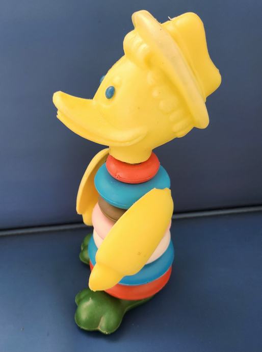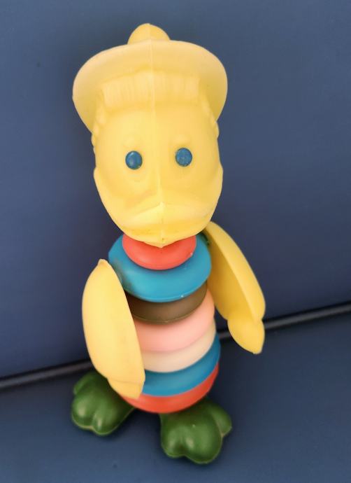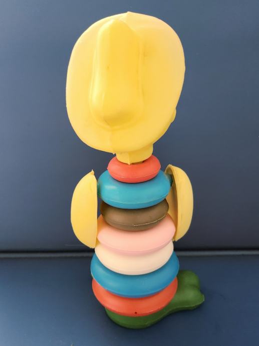 Stara plastična igračka slagalica iz sedamdesetih godina koja se sastoji od kolutova koji se slažu po veličini .