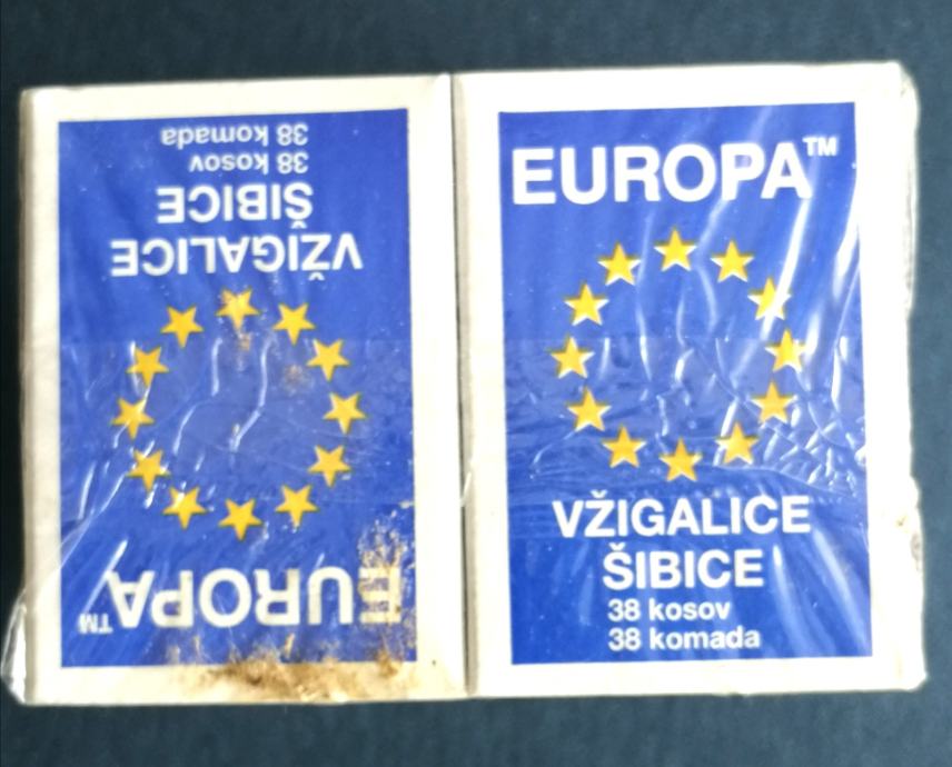 Originalno, neotvoreno pakovanje od 10 kutija šibica.
