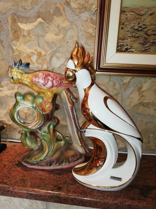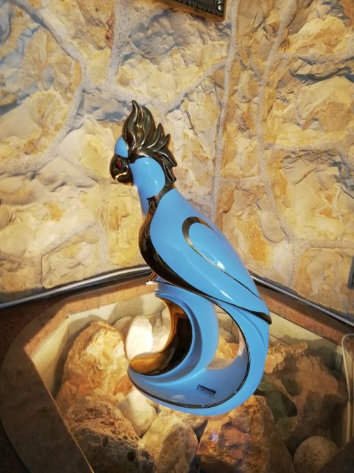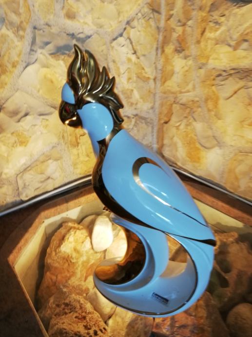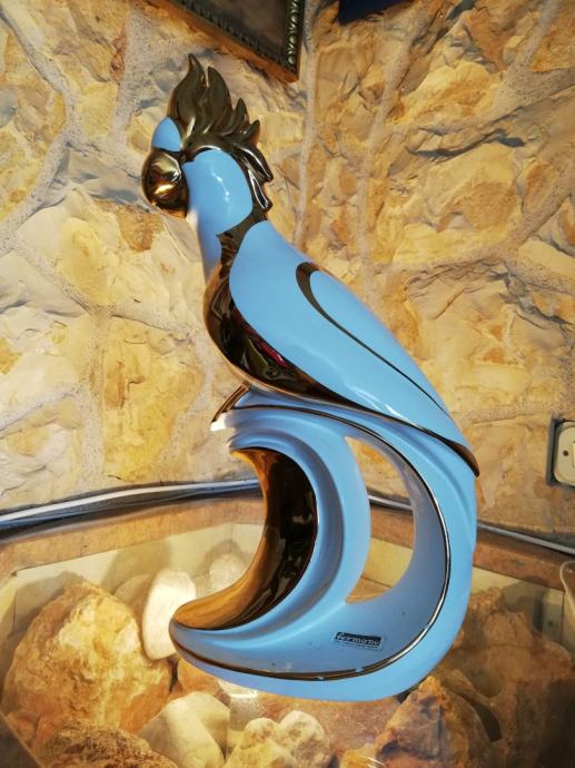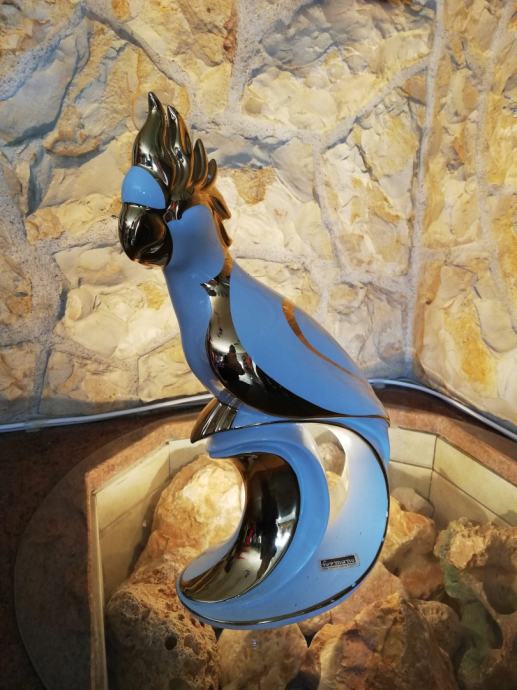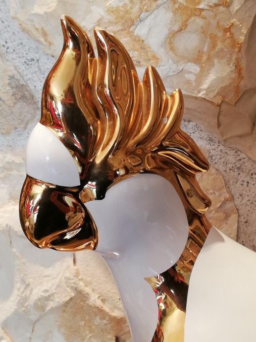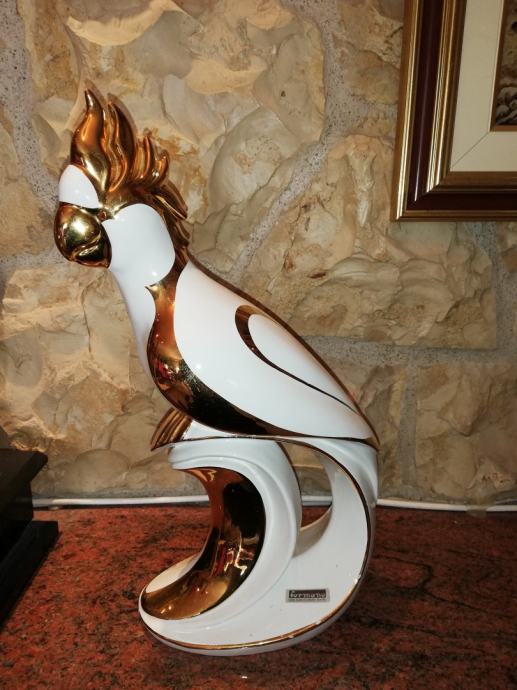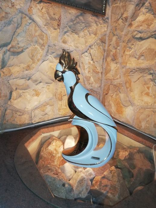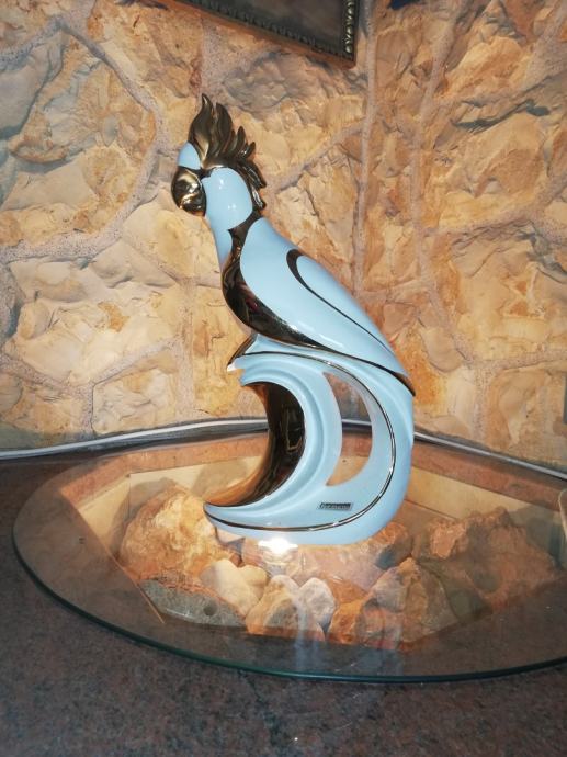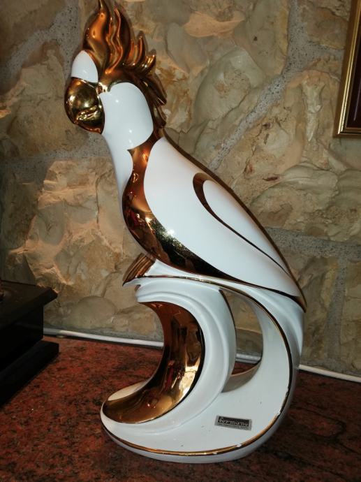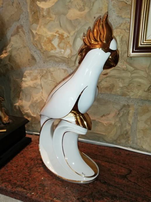 Porculanska figura sa pozlatom, iz 1960- i neke, papagaj-kakadu, izrada: Formano, Italija; ručni rad, potpisano, u odličnom stanju, sačuvano. Visina: 41,0 cm