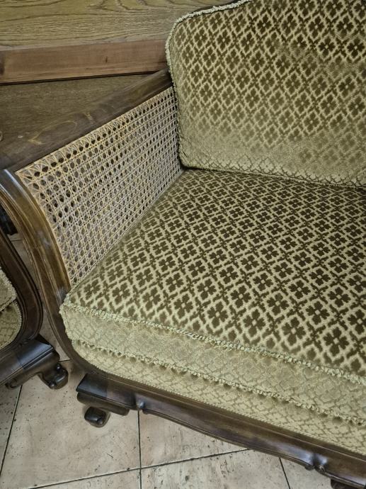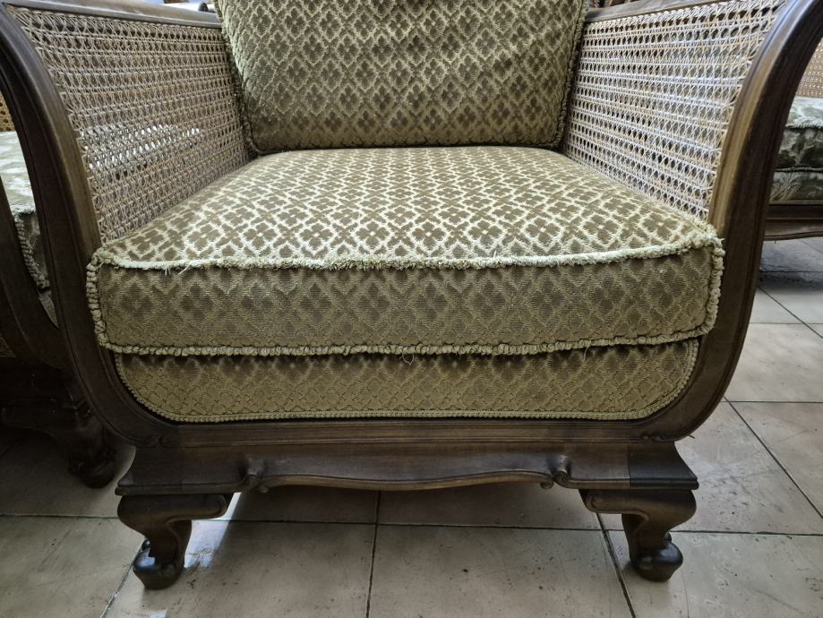 Vintage fotelja (2 kom) zelene boje. Cijena 250 eur za par (2 komada). Cijena sa klubskim stolom u istome stilu 300 eur set.