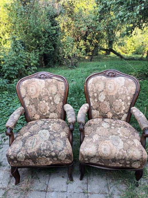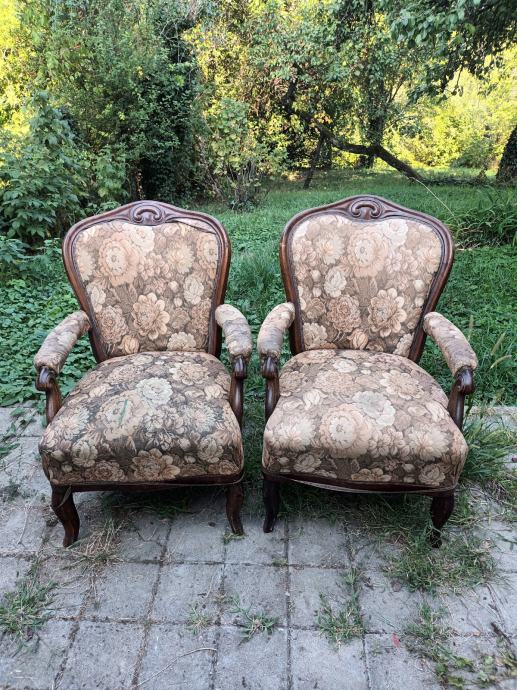 Par starih tapeciranih stolaca s rukonaslonima, starost oko 100 godina, stanje kao na fotografiji , nazvati 091 4800007, Branko