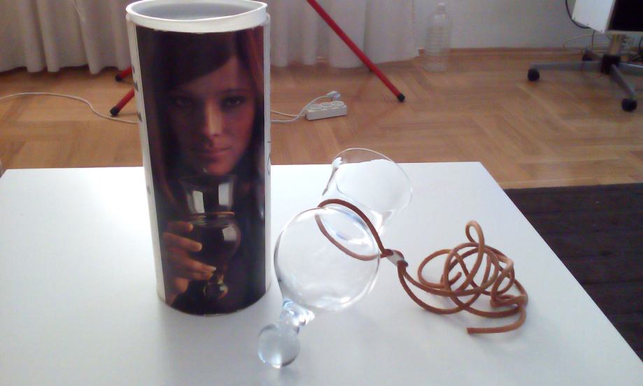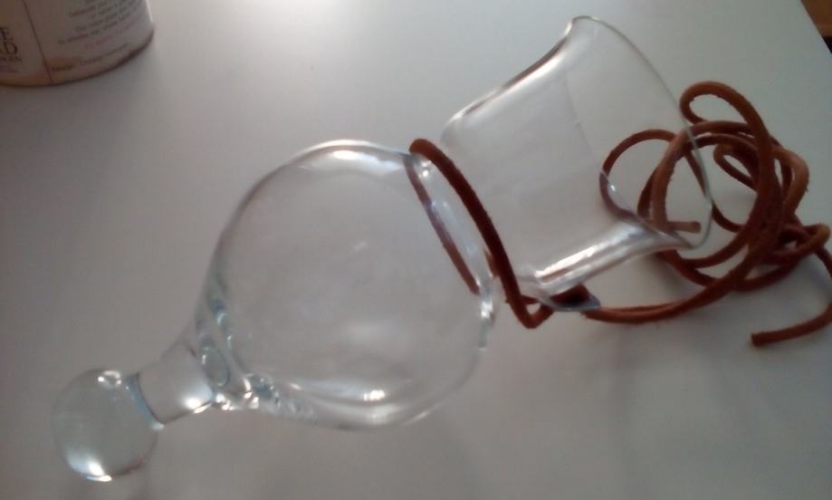Party čaša Danskog proizvođača Holmegaard, neck/glass, nosi se oko vrata, u original kutiji, malo oštećenje na rubu(vidi zadnju sliku).