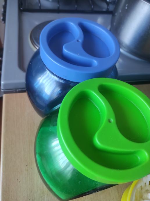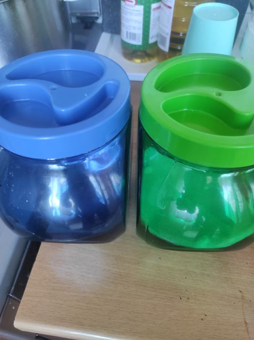 Dvije okrugle PASABACHE posude od debelog,obojenog stakla iz 70 ih godina sa cepovima sa navojem.Predmeti su jako lijepi i mogu poslužiti za brašno,šecer,kavu ili neku tekućinu kao mlijeko i sl ili kao ukras,Vidi slike.Za sve informacije nazovite ili pošaljite upit na Viber ili njuskalo a saljem postom ili tiskom ili u dogovoru sa kupcem.