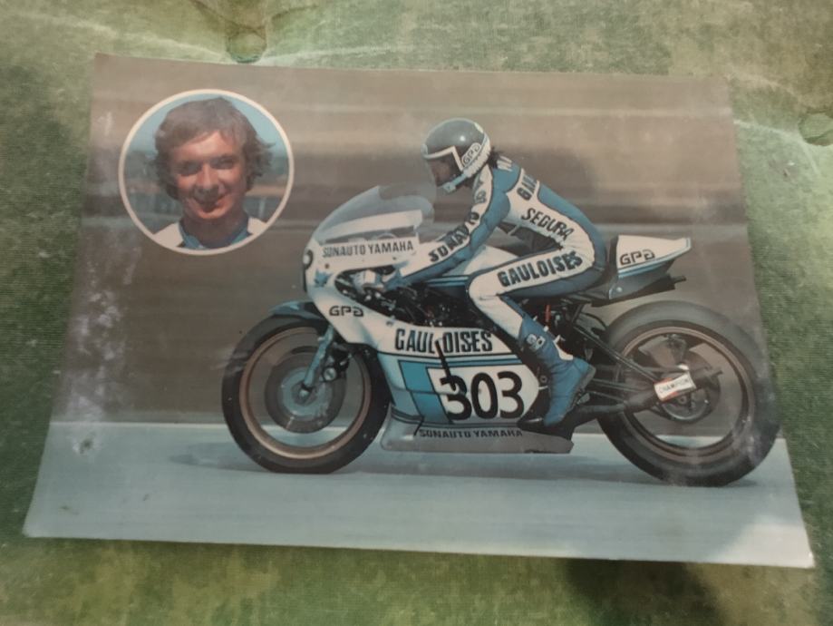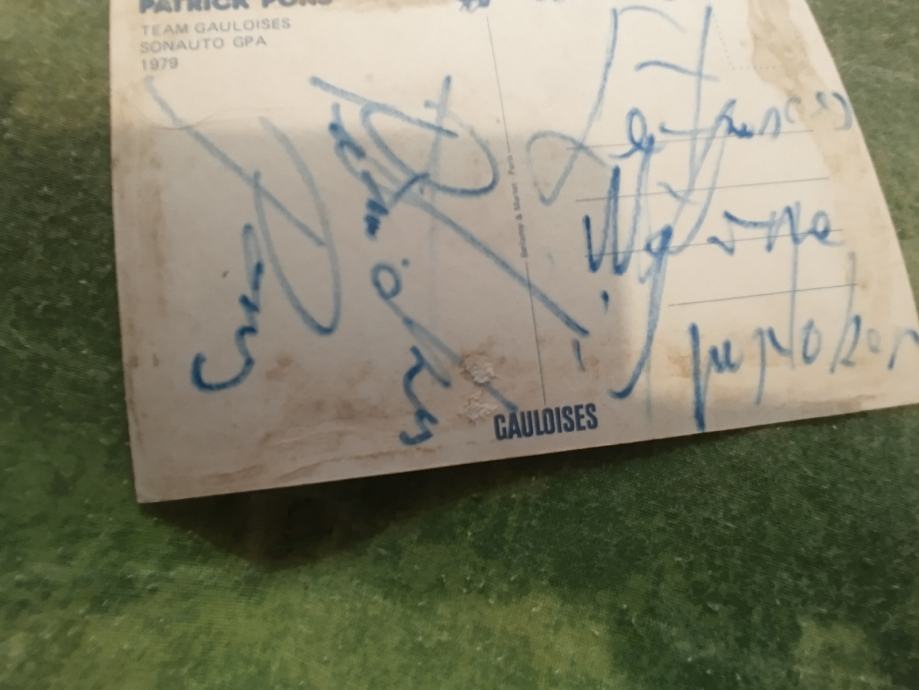 Prodajem staru reklamnu fotku vozača moto utrka Patricka Ponsa ( Gauloises team) sa originalnim autogramom koji je poginuo na velikoj nagradi Velike Britanije 1980g. Plačanje na račun ili gotovina.
